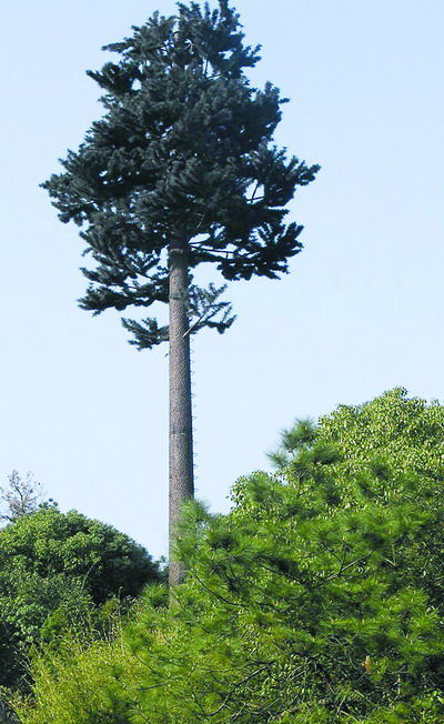優(yōu)點(diǎn):保持了原有單管塔的所有優(yōu)點(diǎn),在其外形上作了重大的突破、改進(jìn),以自然生長(zhǎng)的松樹,樟樹等為仿真的造型樣本,設(shè)計(jì)素描圖和電腦效果圖,制訂雕塑和噴涂工藝程序,對(duì)單管塔仿真?zhèn)窝b,使人們察覺不到塔的存在,把它融入了周圍的自然環(huán)境中。